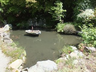 甲将殿の前に勝頼が自害をしたという生害石があって、そこから少し下りた所に 首の無い