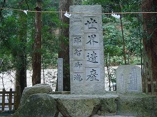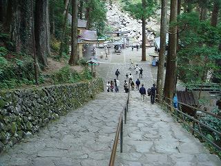 鳥居から石が敷き詰められた遊歩道を歩いて行くと 階段の下に那智大社別宮飛瀧神社が