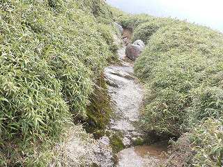 (笹原の中を登る登山道)