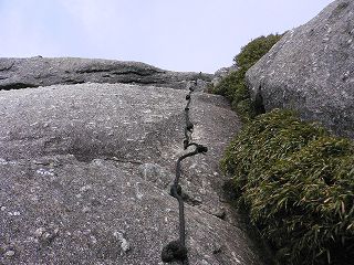 (山頂に登るロープ)