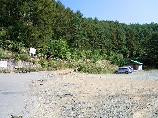 の案内に従って登って行くと、(急坂にイヤ気がさしてきた頃)右に広い駐車場があります。
