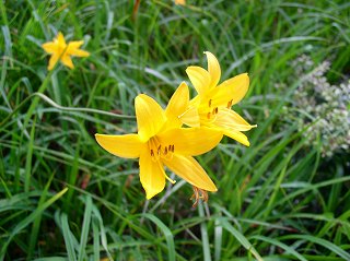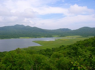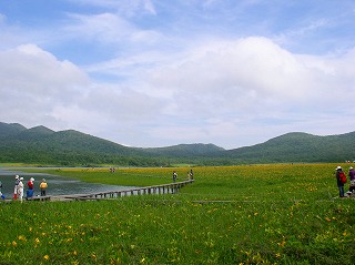 小国沼から 広い階段が整備された遊歩道を登った所にある展望台から、ニッコウキスゲ