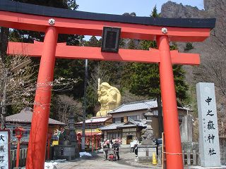 中之獄神社鳥居をくぐると 右に日本一の大黒様があって、その奥に大黒神社があります。