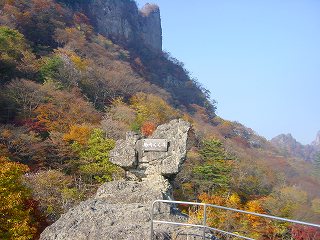 大黒神社から傾斜のきつい石段を登った所にある中之獄神社から左に行くと轟岩があって、