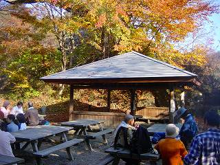 管理事務所から車道を東に歩いて右下に きのこの里の駐車場が見えたら、そこから左上