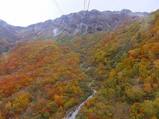 黒部平から大観峰に向かうロープウェーは7分で、眼下に広がる紅葉が素晴らしかった。
