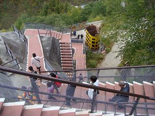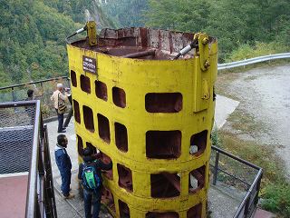展望台からダムの堤体に下りる途中に、(建設当時を紹介するフィルムで良く目にする)ダム
