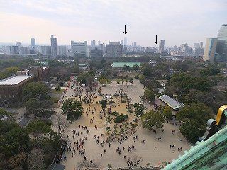 (北、クリスタルタワーと大阪城ホール)