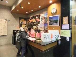 天守閣入り口の1階はインフォメーションやショップ、2階は大阪城の情報や鯱の原寸大レプリカ