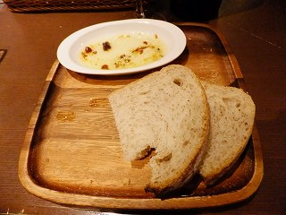料理を待っている間に お通しとして2種類のバケットとオリーブオイルが提供されましたが、