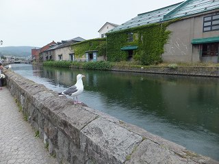 (小樽運河を眺めるカモメ)