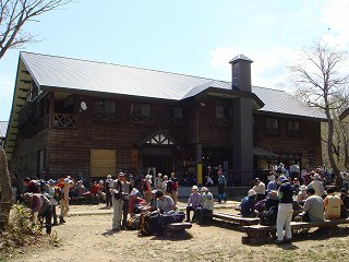 乗り合いタクシーに乗って鳩待峠に着くと ミズバショウを目当てのハイカーが沢山いました。