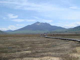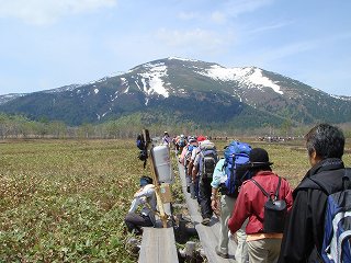 至仏山は残雪が美しい斑模様を描き 尾瀬ヶ原には心地よい風が吹いて最高の季節です。