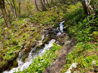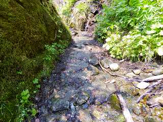 (登山道を横切る沢)