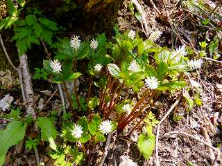 ユブから周囲に残雪が出てきて、登山道の周りにオオミスミソウ(ユキワリソウ)が群生する