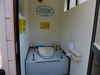 登山口にあるプレハブタイプの公衆トイレは 登山靴でも利用しやすい洋式タイプです。