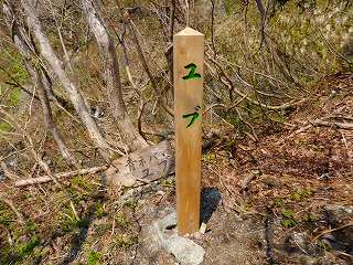 落合から30分登った「ユブ」に、登山口と十字路までの距離が書かれた案内がありました。