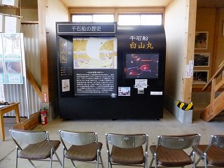 右舷にある階段の下では、千石船の歴史や白谷丸の建造工程をビデオで紹介しています。