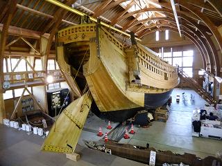 当時の設計図をもとに忠実に復元された実物大の千石船は圧巻で、船首の水押