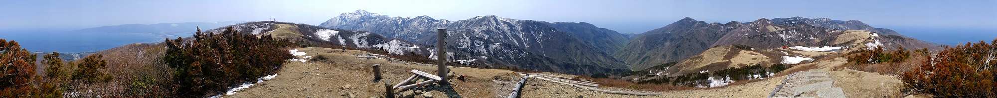 この日は春霞で遠景が霞んでましたが、空気が澄んでいると 鳥海山・ 月山・ 朝日岳・