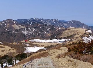 なだらかな稜線の登山道は快適で、風が強い為か日当たりが良いからか 吹き溜まり以外に