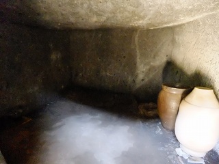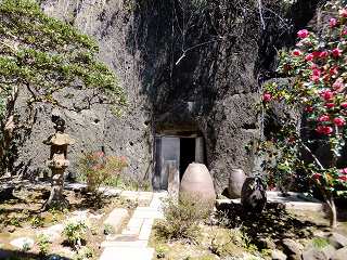 家の奥にある狭い庭では、崖の下に 食料などを保管する土蔵が掘られています。