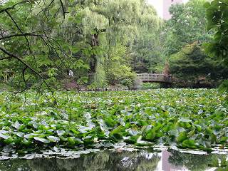 赤レンガ庁舎の敷地内に大きな池があります。