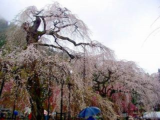 そこには 昨夜と別世界の雨に濡れた寂しい姿の桜の巨木がありました。