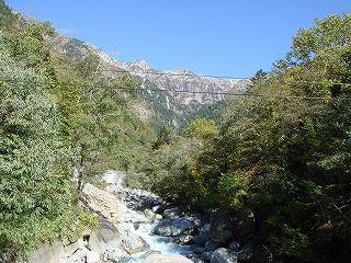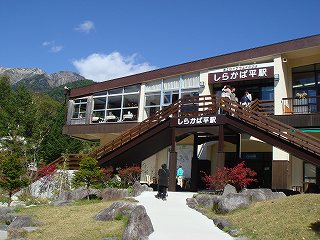 (駐車所の橋から見た蒲田川と笠ヶ岳)______(ロープウェーの新穂高温泉駅)