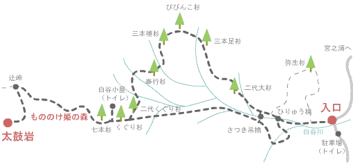 ___(さつき橋から びびんこ杉経由で太鼓岩に行って、帰りに弥生杉を見ました)