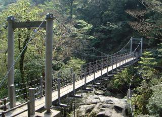管理棟から さつき吊橋まで行くのには 弥生杉コース・憩いの大岩コース・飛竜落とし