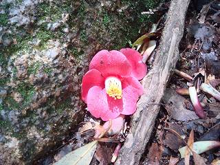 苔むした林の中は花が少なくて、ここで見た花は 登山道に落ちていた椿の花だけでした。