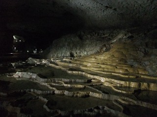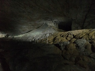 黒谷支洞に入ると鍾乳洞が少し狭くなって 鍾乳石・石筍も複雑な形をした物が多くなります。