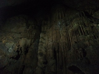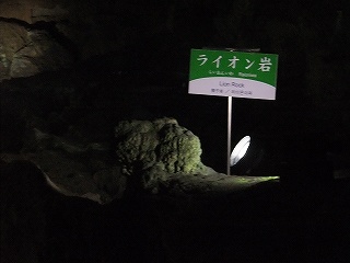階段を登った所に 天井から沢山の鍾乳石が下がった 傘づくし、ライオンの頭部のような