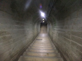 ここから コンクリートで作られたトンネル内の階段を歩いて黒谷支洞に入ります。