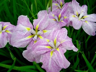 花菖蒲とアヤメとカキツバタの見分け方は、花の付け根に黄色い線が入っているのが花菖蒲、