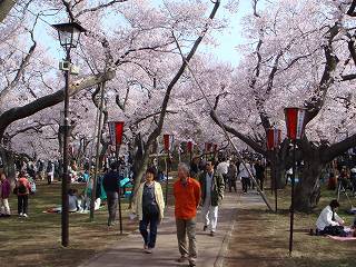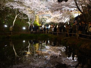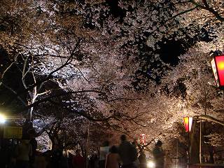 公園の外側から見た桜ですが、昼間は華やかで 夜は幻想的です。