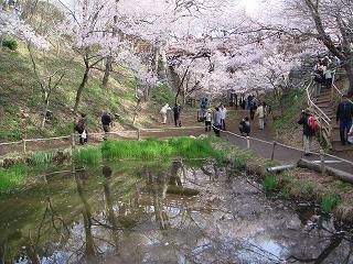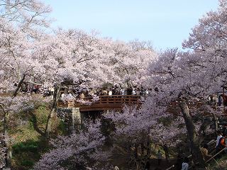 お堀の池に写った 桜雲橋の桜。