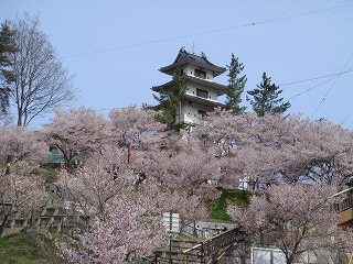 (駐車場から見た高遠城址の櫓)