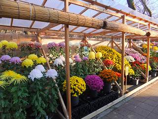 春の桜に比べたら静かですが、紅葉は見頃で 公園の一角に菊が展示されていました