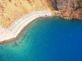 (奥四万湖のダム堤体)