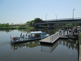 北西の駐車場の所に つつじが岡公園を川から見学できる渡船場があります。