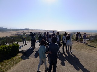 3階から表に出ると 階段の上にロシアの民話・大きなカブのサンドアートがあり、その上に