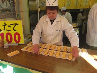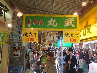 丸武で焼きたての玉子焼きを売っていたので、お腹がきつかったけど食べました。