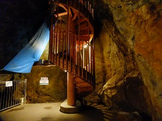 (鍾乳洞を登る階段、左下に人の姿)