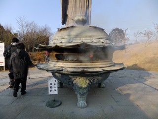 参道を歩いて行くと日本一の大香炉があって、その奥に 南無阿弥陀仏と唱えながら6歩で
