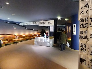 約70の写経席が用意されていて、正月は書初めコーナーになっていました。
