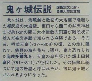 波と風の浸食によって形成された奇岩があって、鬼の岩屋と呼ばれる無数の洞窟は1キロ