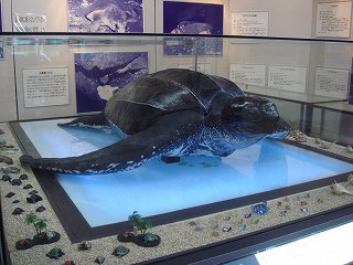 館内にはウミガメに関する資料や写真や剥製があって、世界最大のウミガメといわれる