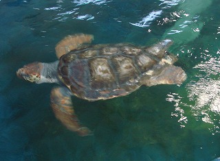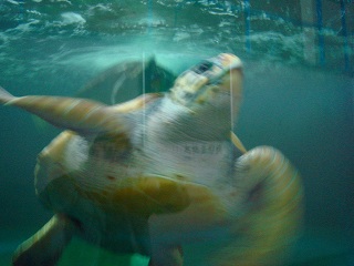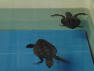 もう一つの水槽では8月8、9日に生まれたという、生後5ヶ月の可愛いウミガメが泳いでました。